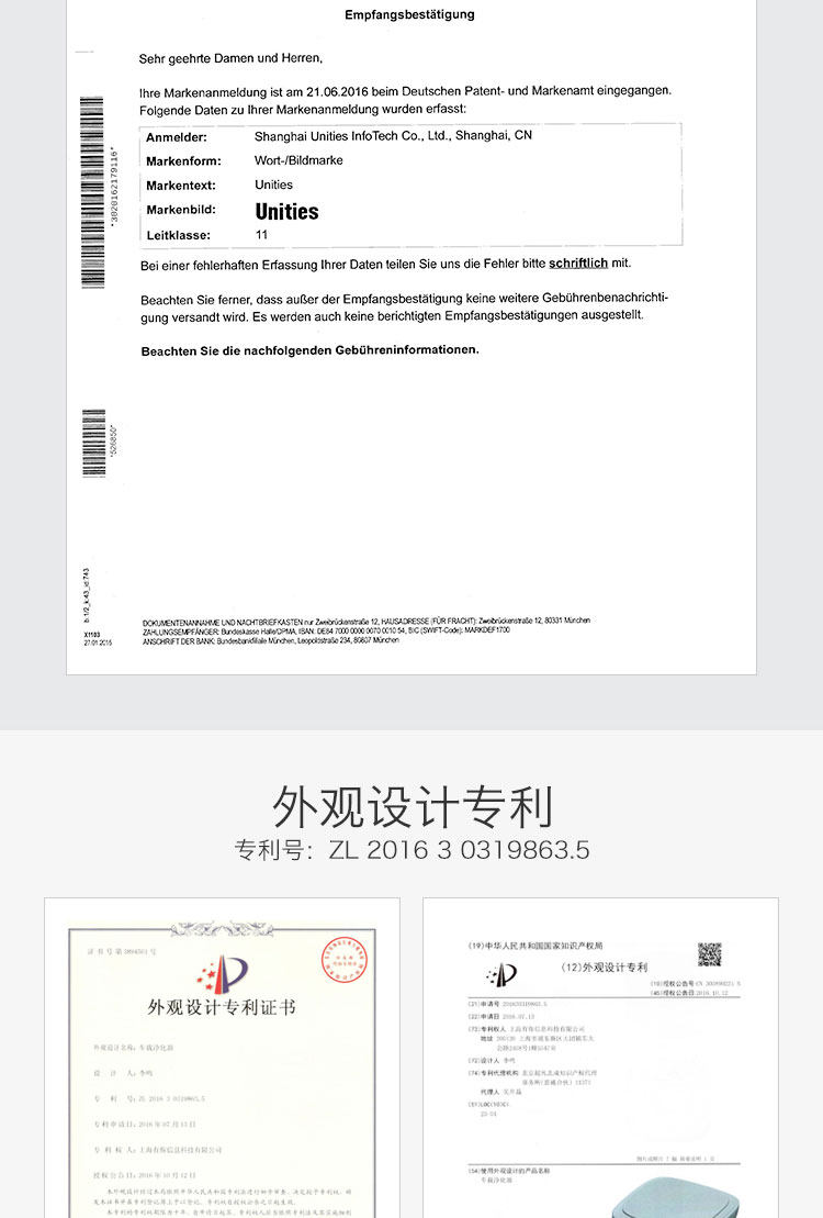 unities德国车载空气净化器除甲醛烟味雾霾家用桌面汽车用负离子