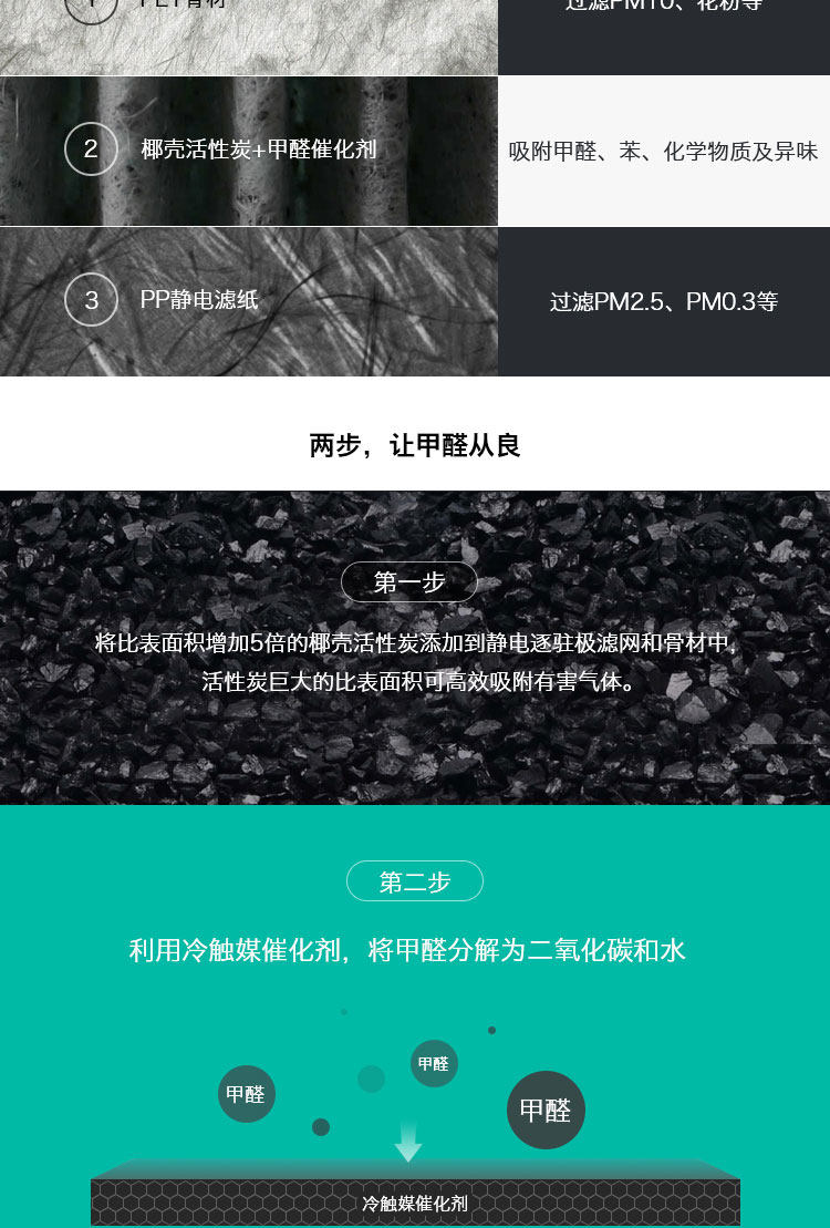 • 功能:消除异味 过滤灰尘 杀菌 吸收TVOC气体