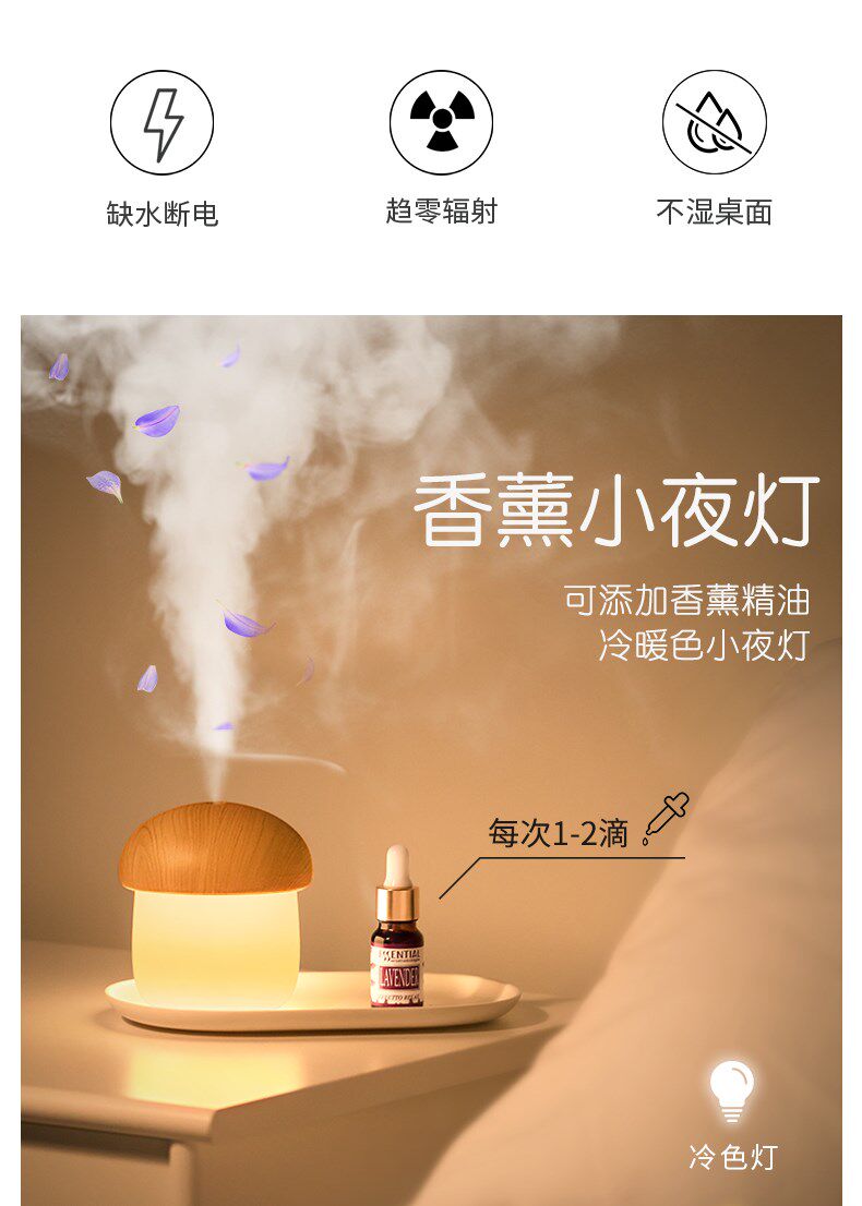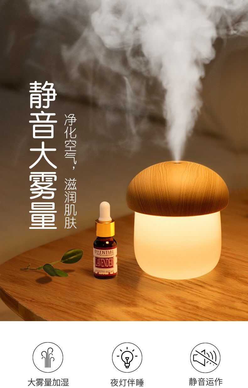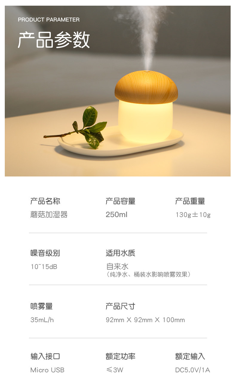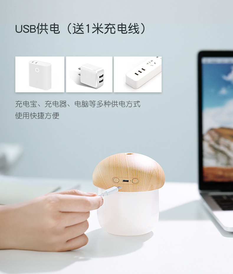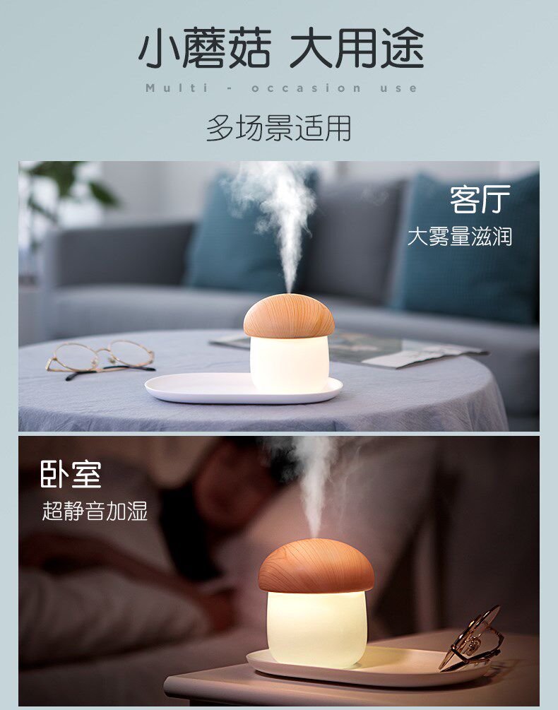 车载空气净化器生日情人节补水仪风扇小夜灯三合一蘑菇小米加湿器