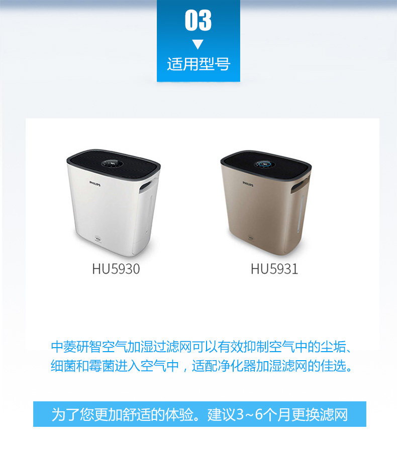 [中菱研智旗舰店净化,加湿抽湿机配件]适用飞利浦空气净化加湿器过滤网HU5月销量9件仅售69元