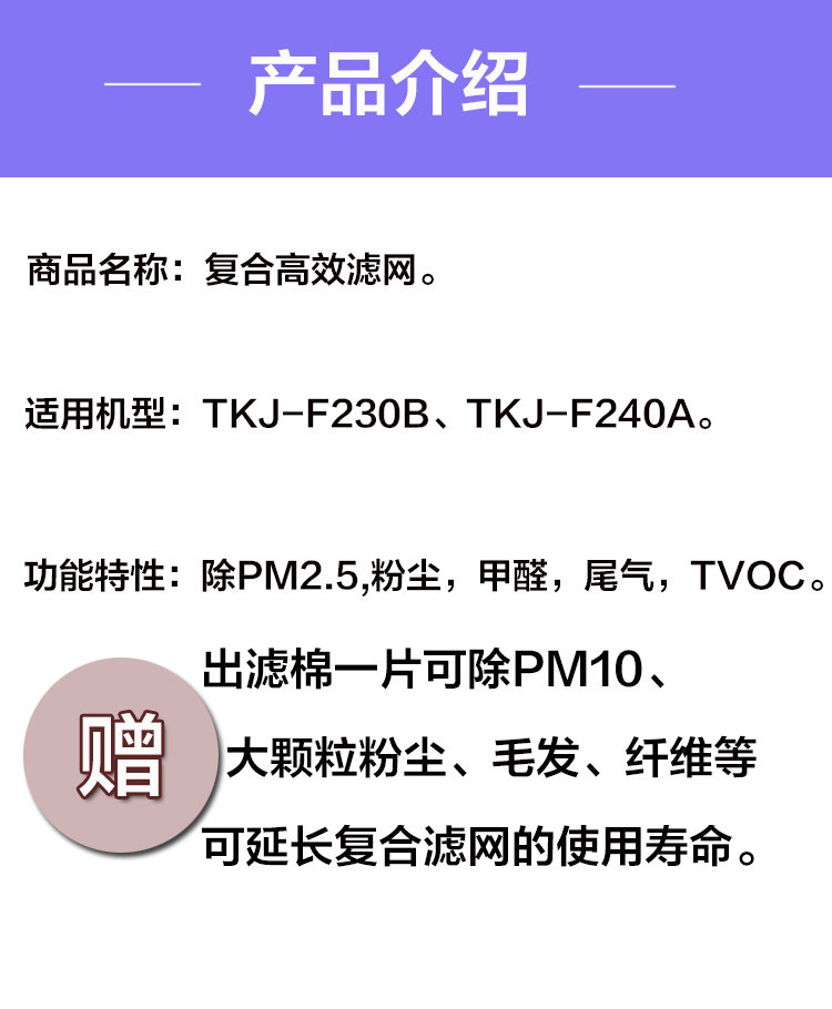 适配TCL空气净化器TKJ-F230B/F240A初效HEPA活性炭高效复合滤网