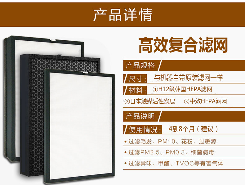适配TCL空气净化器TKJ510F-A1/515/520/550两片式过滤网滤芯套装