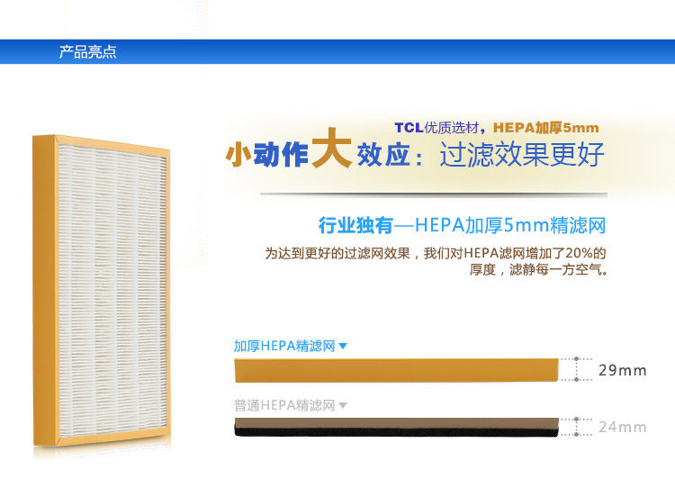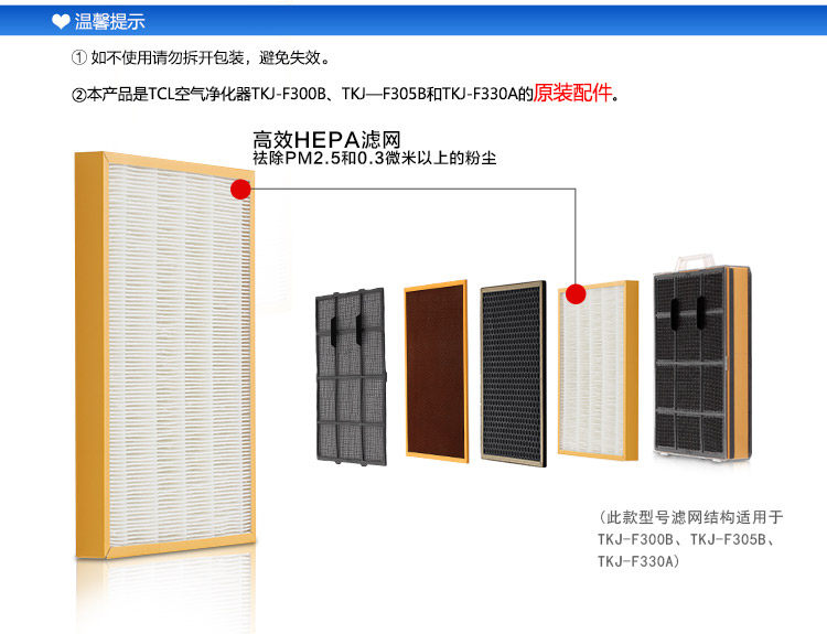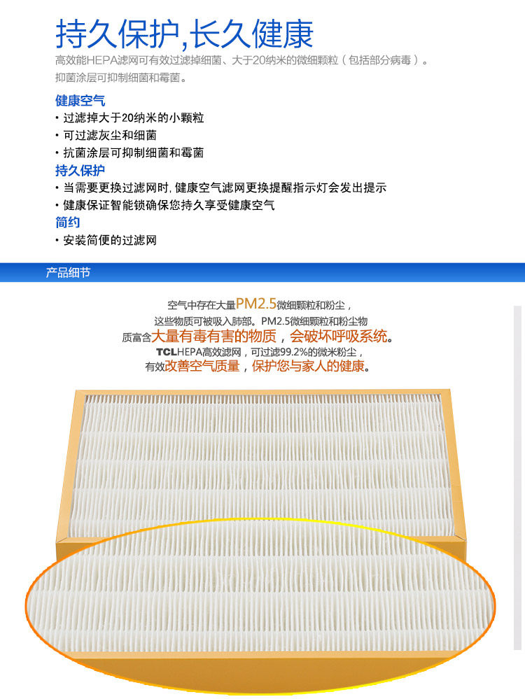 TCL空气净化器TKJ-F315A 专用HEPA过滤网美国3M标准滤网