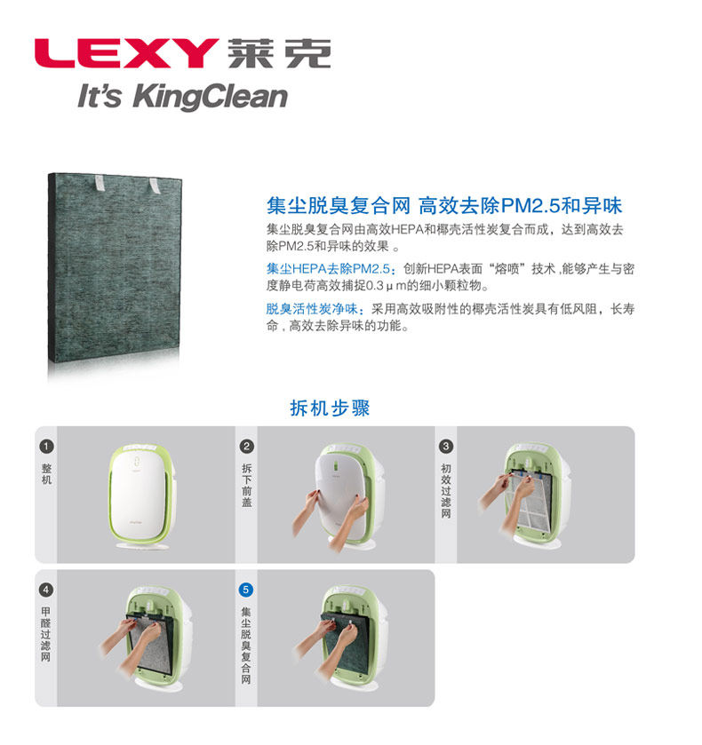 lexy莱克空气净化器KJ302甲醛分解网集尘脱臭复合网配件原厂正品