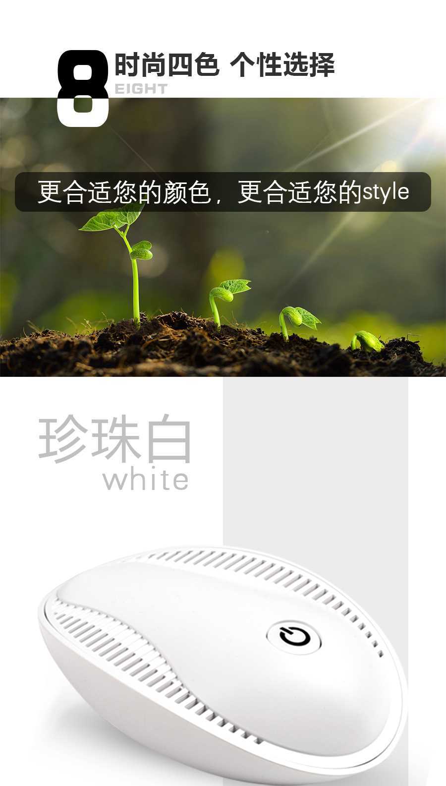 • 颜色分类:清新绿 睿智黑 时尚粉 太阳能净化器+除味器 套装 珍珠白