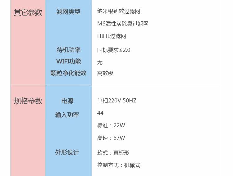 • 空气净化器风量:301-400立方米/小时 50 立方米/小时