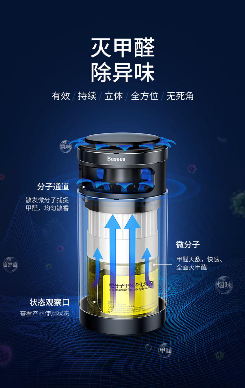 倍思 车载用品空气净化器汽车用负离子除甲醛PM2.5竹炭包除异味氧吧消除新车异味摆件车内除烟味臭氧杀菌香薰