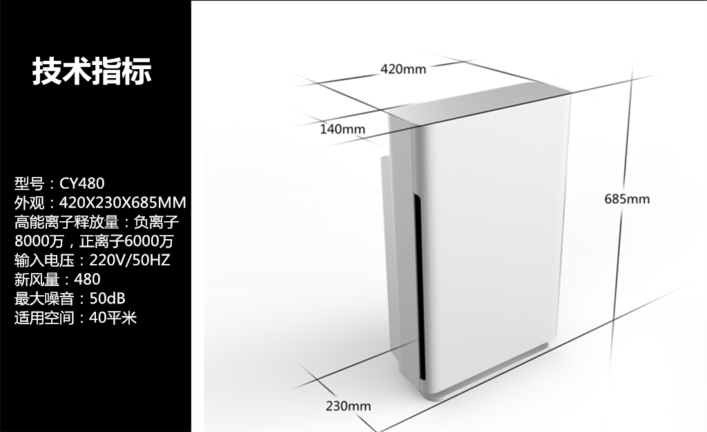 • 甲醛CADR值:480立方米/小时