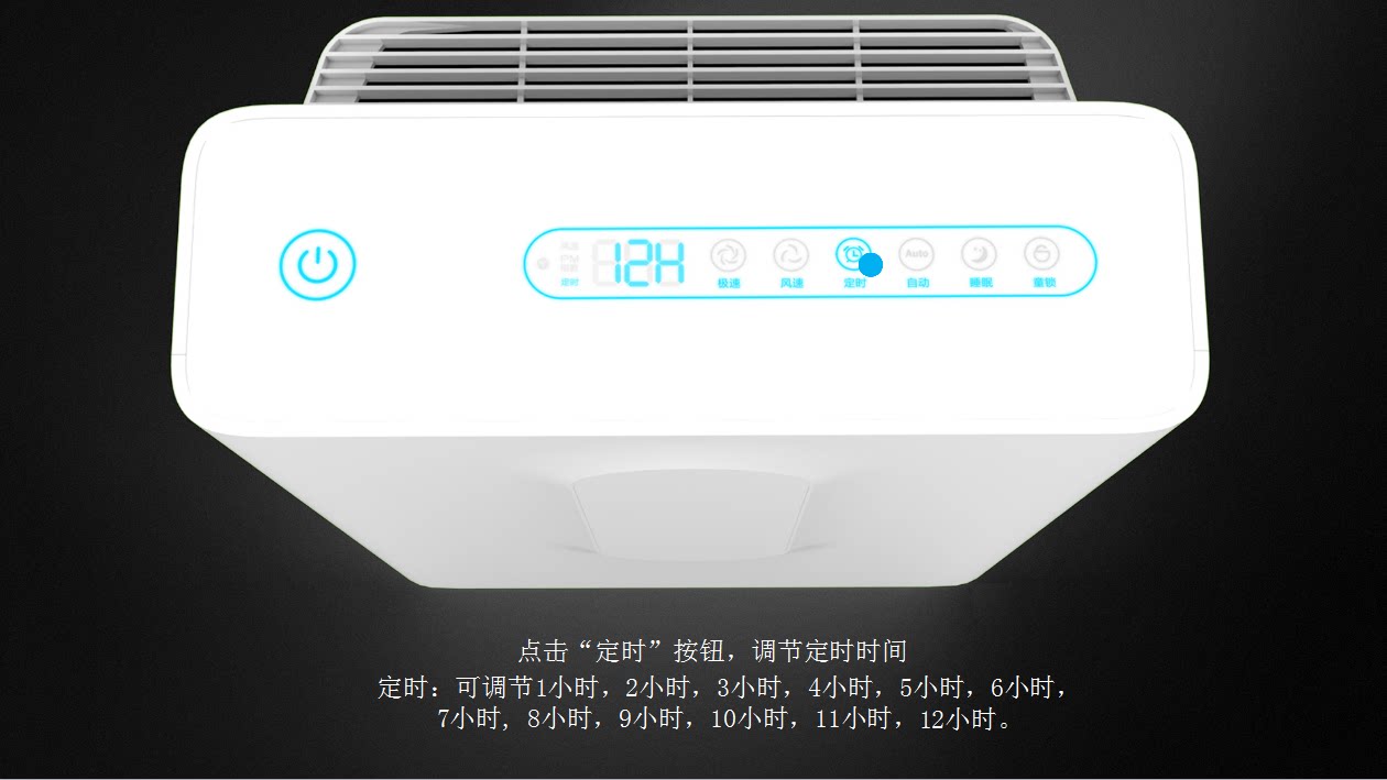 • 功能:定时 除VOC 除花粉 除颗粒物 除甲醛 除烟除尘 杀菌