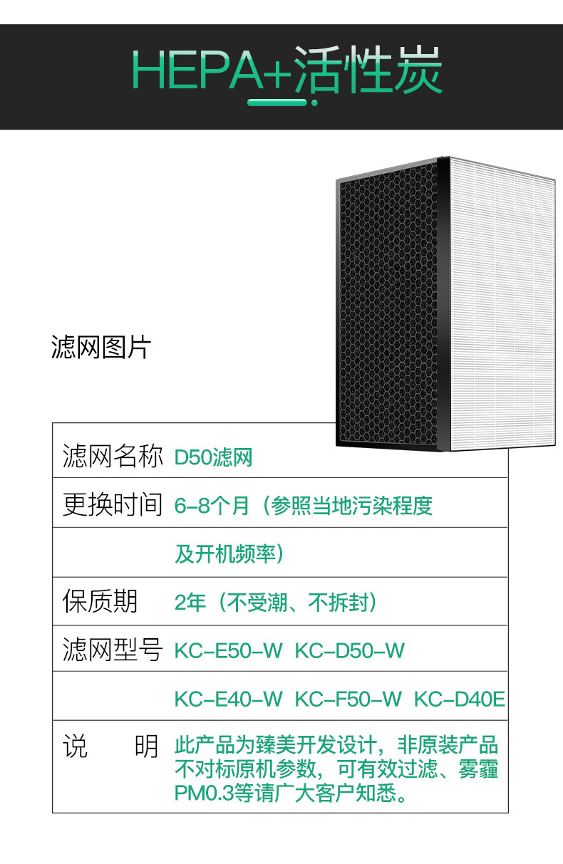 [臻美电器旗舰店净化,加湿抽湿机配件]适配夏普空气净化器滤网KC-D50/月销量11件仅售138元