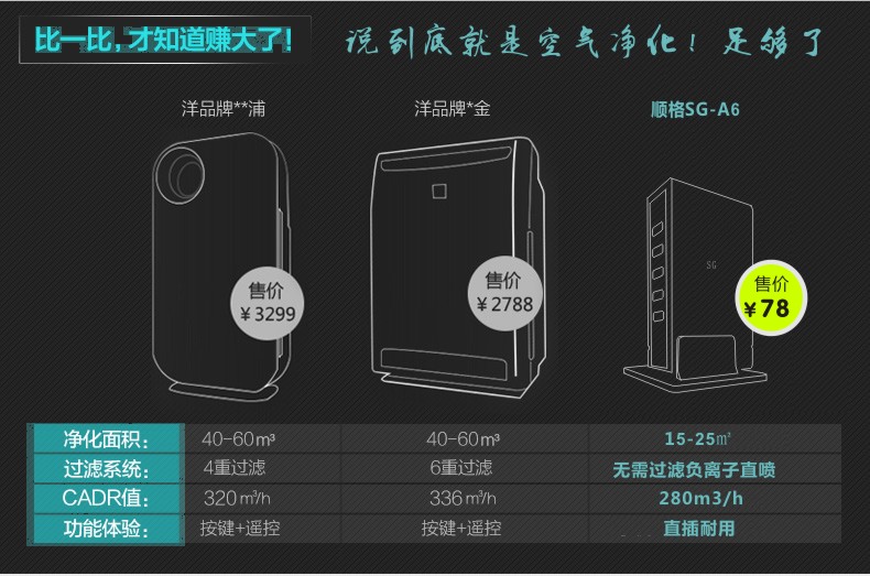 我国双重雾霾压城,呼吸质量下降,买一款不贵的纯净负离子净化器,保护好自己! 大浓度负离子 6组碳丝发射头释放 除二手烟尘 甲醛 静音