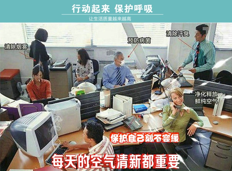 制造活性氧:负氧离子能有效激活空气中的氧分子,使其更加活跃而更易被人体所吸 收,有效预防"空调病"。