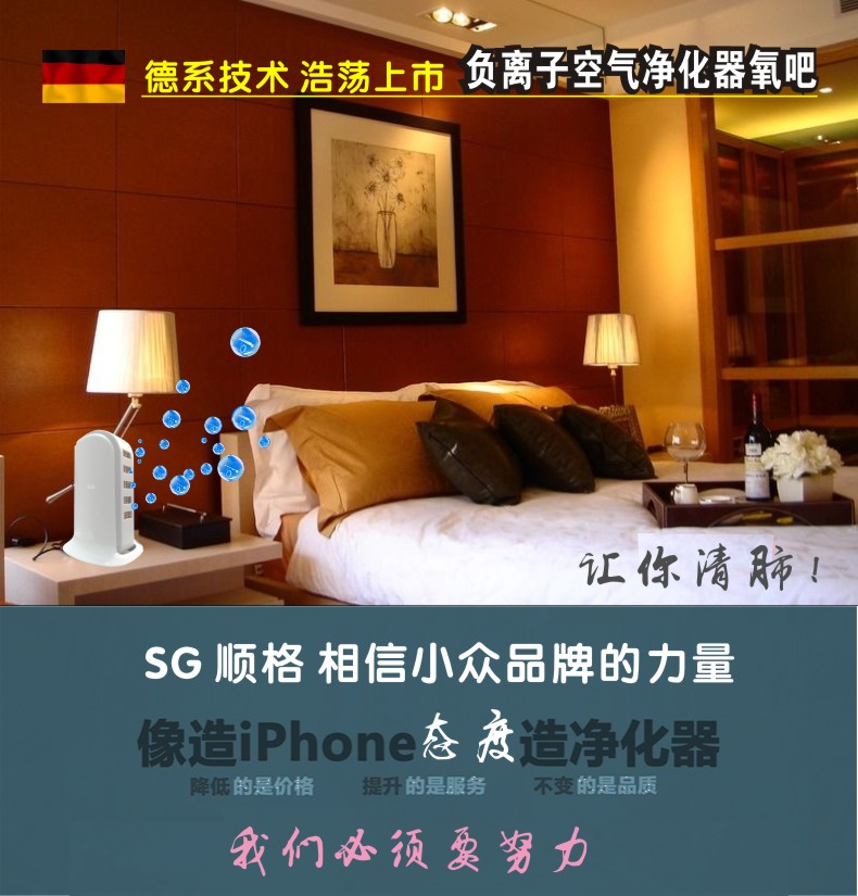 改善睡眠:经负氧离子作用,可使人精神振奋,工作效率提高,还可改善睡眠。杀菌功能:负离子发生器在产生大量负离子的同时会产生微量臭氧,二者合一更易吸附各种病毒、细菌,使其产生结构的改变或能量的转移,导致其死亡。除尘灭菌,减轻二手烟危害更有效。环保健康看得见。