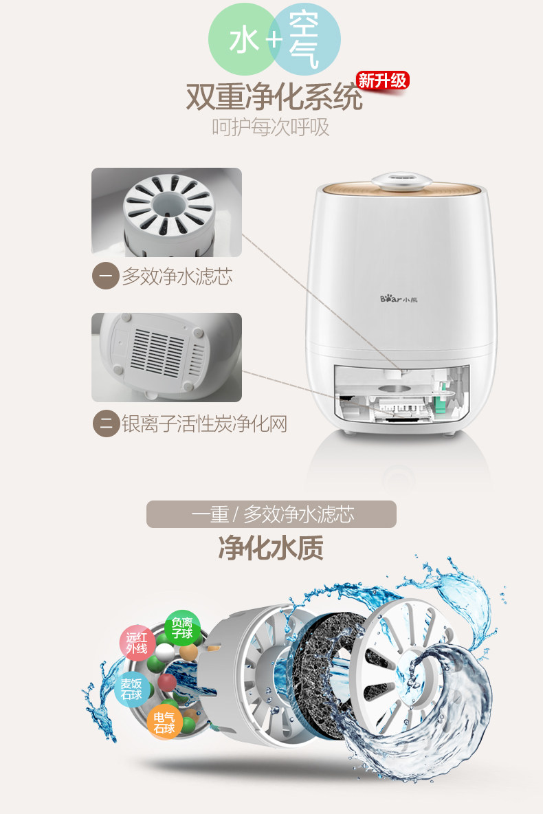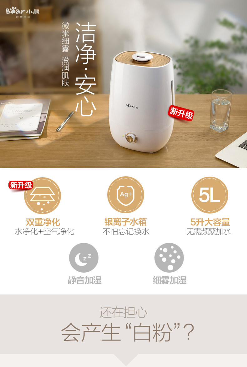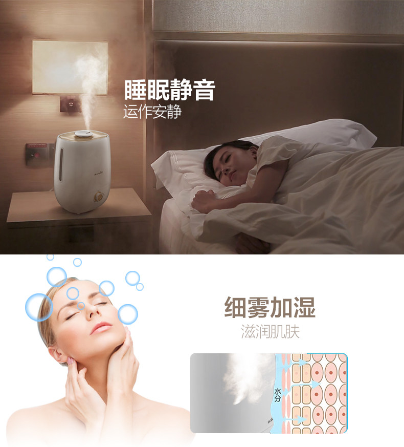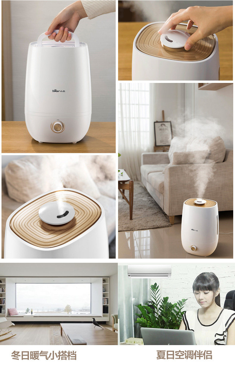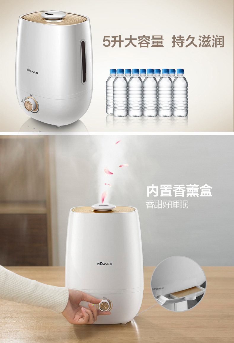 加湿器挺不错的,大容量,不用经常加水!说送香精的,结果店家忘记放了!还好及时解决问题了!总之还是很满意的!
