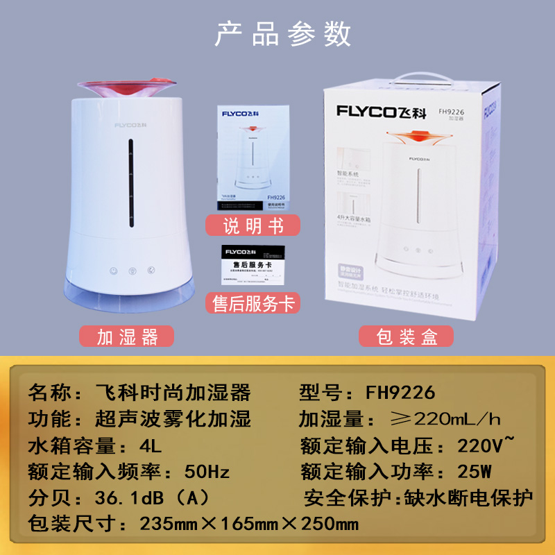 [飞科龙舜店加湿器]飞科加湿器家用静音大容量卧室办公室空月销量2件仅售159元