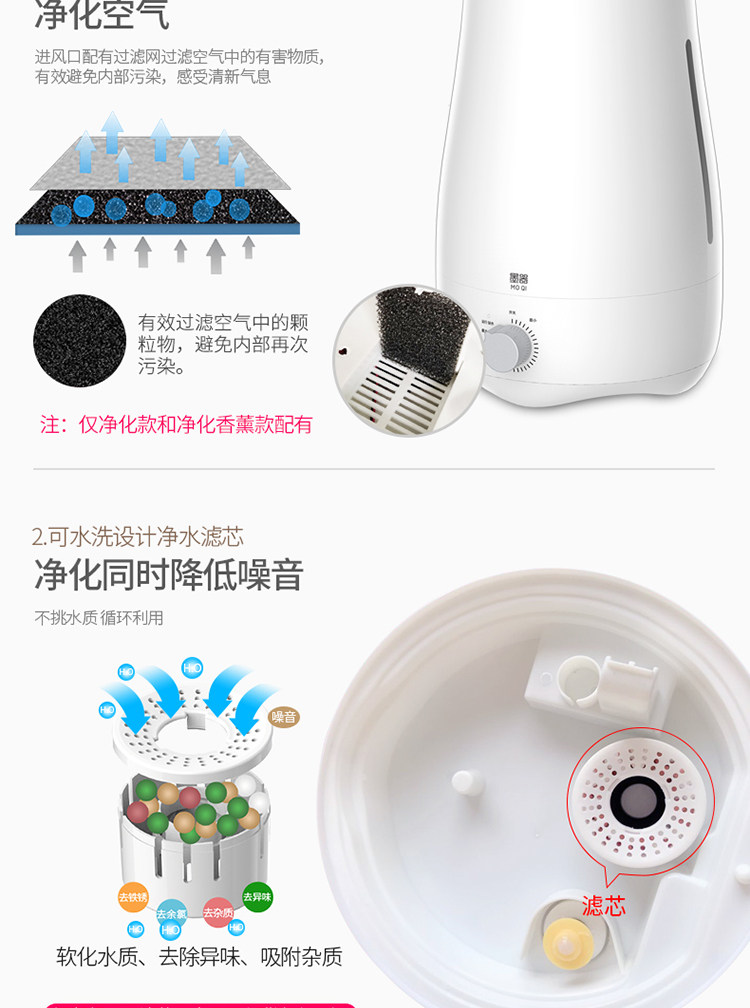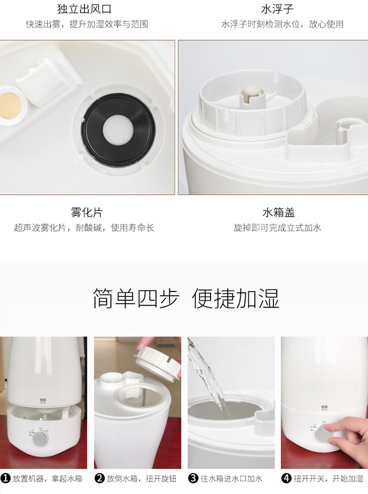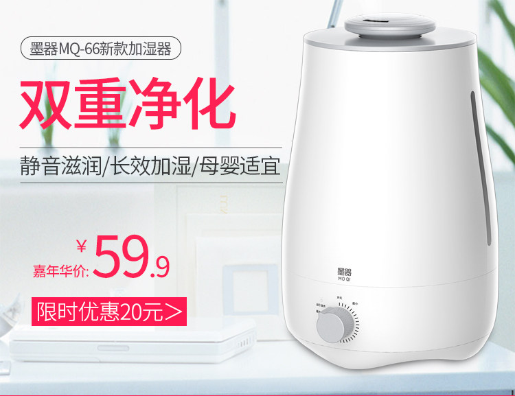 [墨器电器品牌店加湿器]墨器加湿器家用静音卧室孕婴空调空气净月销量3件仅售79.9元