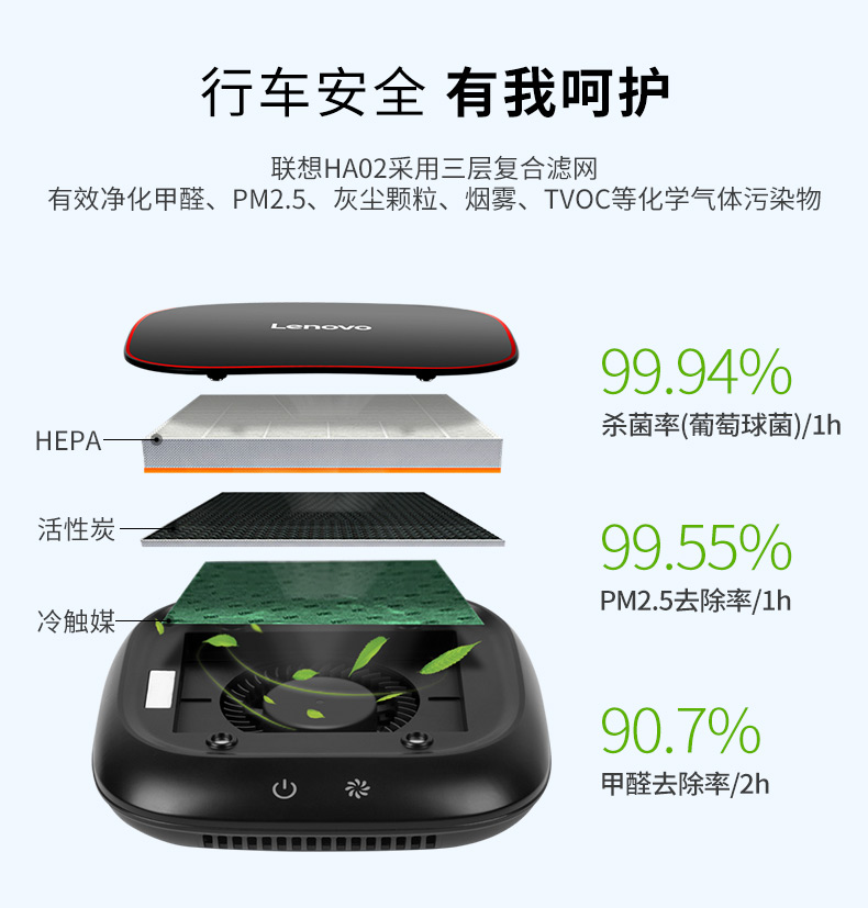 联想车载空气净化器除甲醛汽车内用负离子氧吧香薰pm2.5消除异味