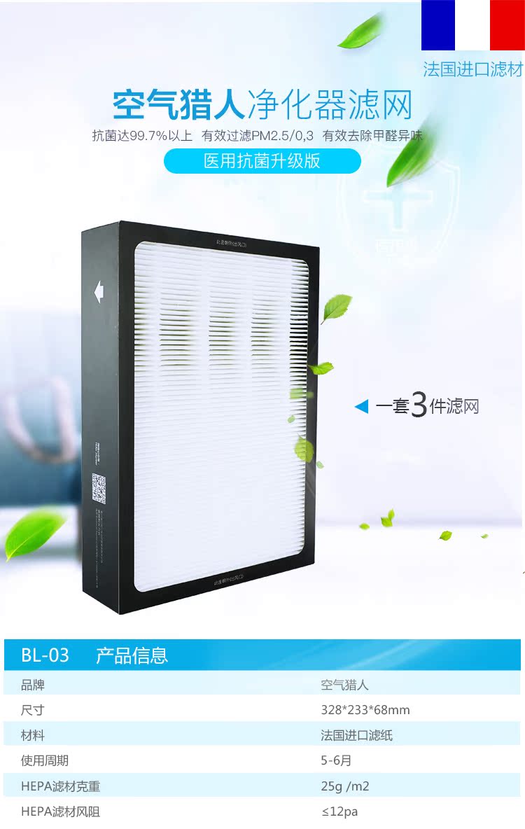 • 滤材:法国进口HEPA滤纸