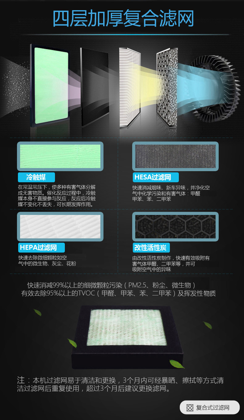 • 净化原理:HEPA滤网 活性炭