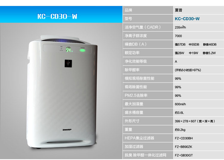 • 产品名称:Sharp/夏普 KC-CD30-W