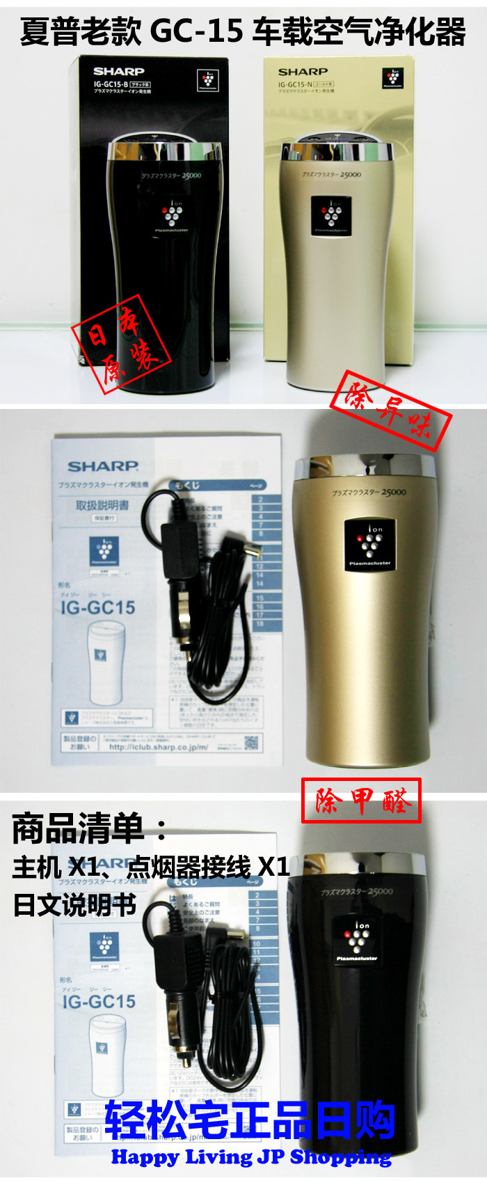[轻松宅正品日购车用氧吧,空气净化器]日本夏普车载空气净化器IG-JC15月销量0件仅售439元