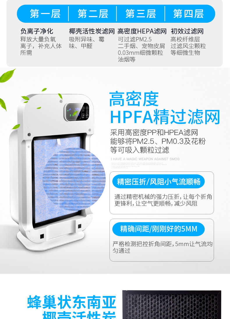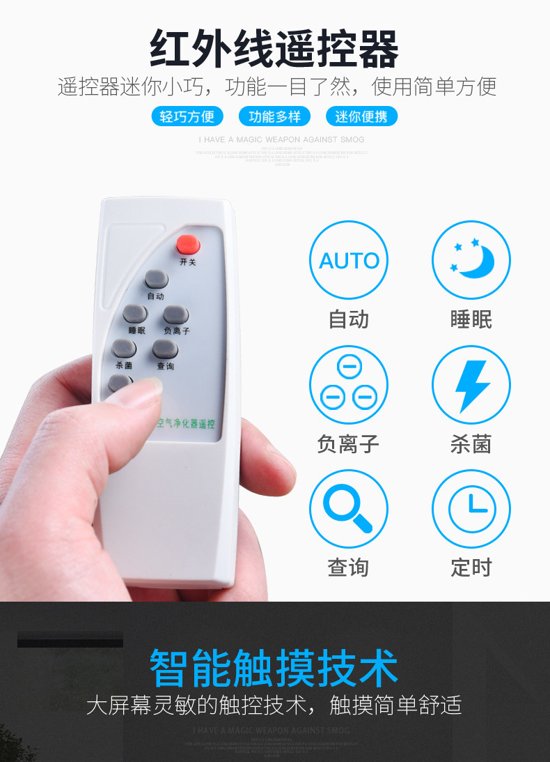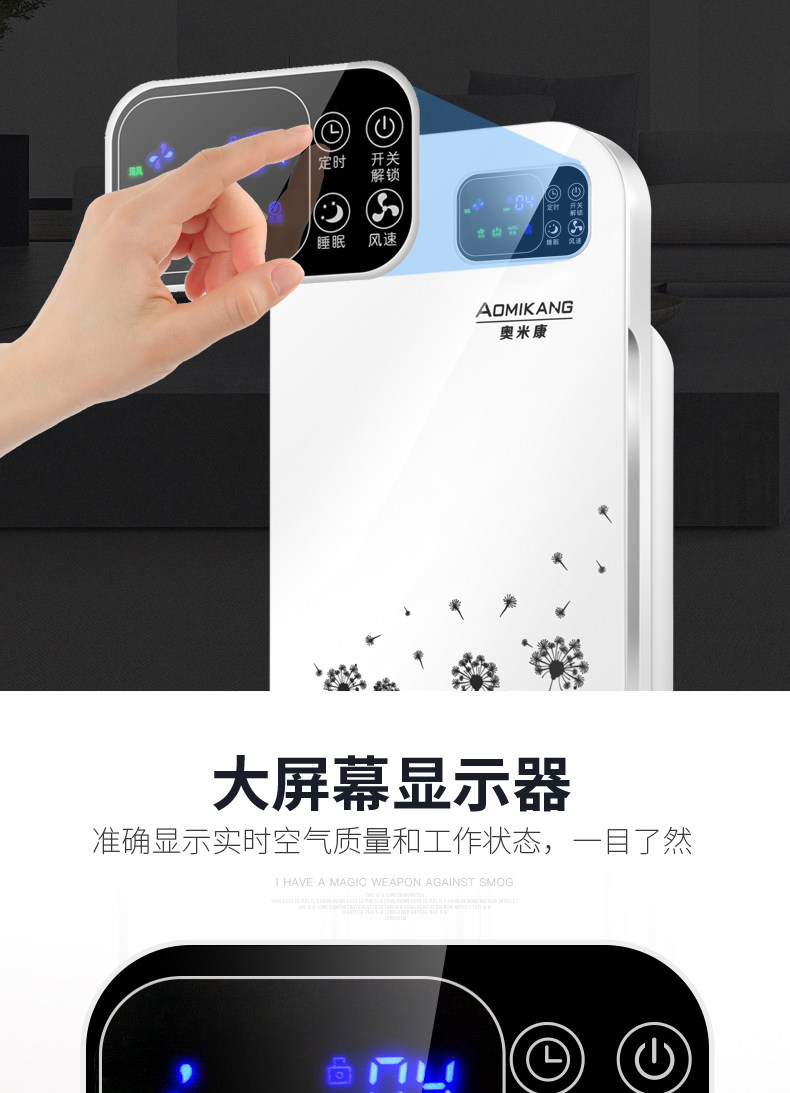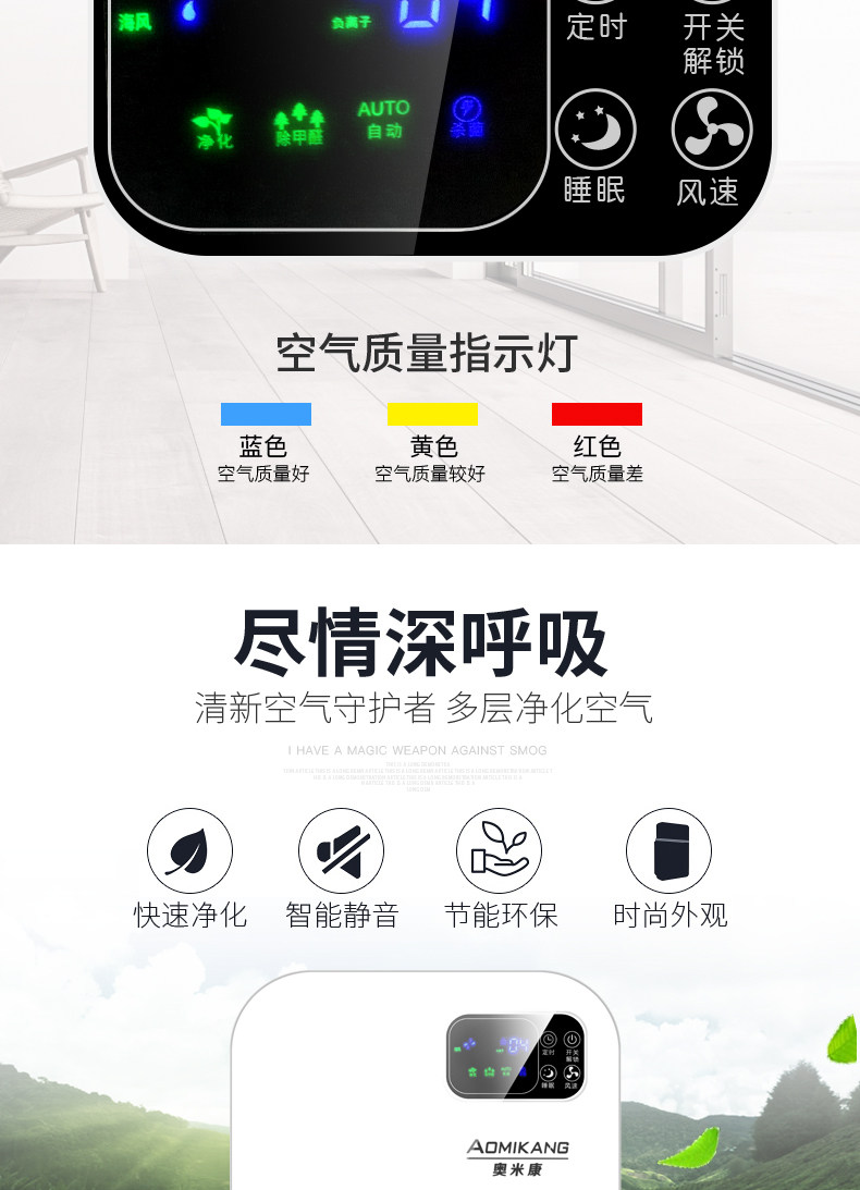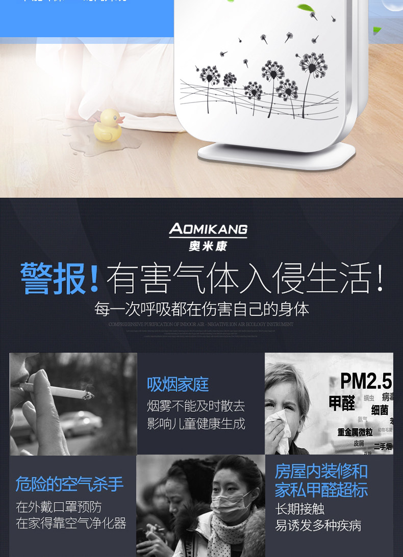 • 功能:缺氧监测 定时 除VOC 除花粉 除颗粒物 除甲醛 除烟除尘 杀菌 加氧 除雾霾 除菌, 负离子 除菌