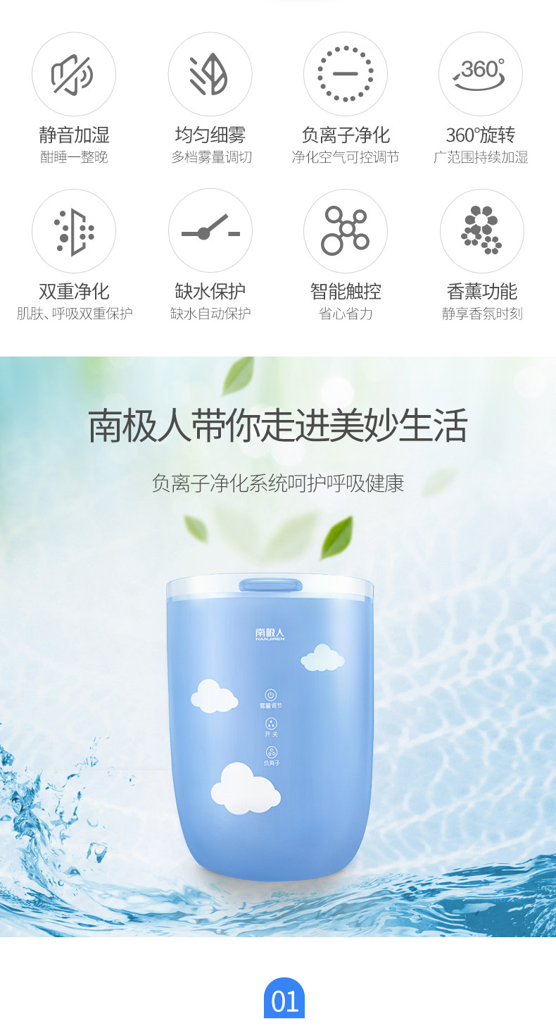 (82)[伟盛电器商城加湿器]空气加湿器家用静音卧室除螨杀菌大雾量月销量99件仅售288元