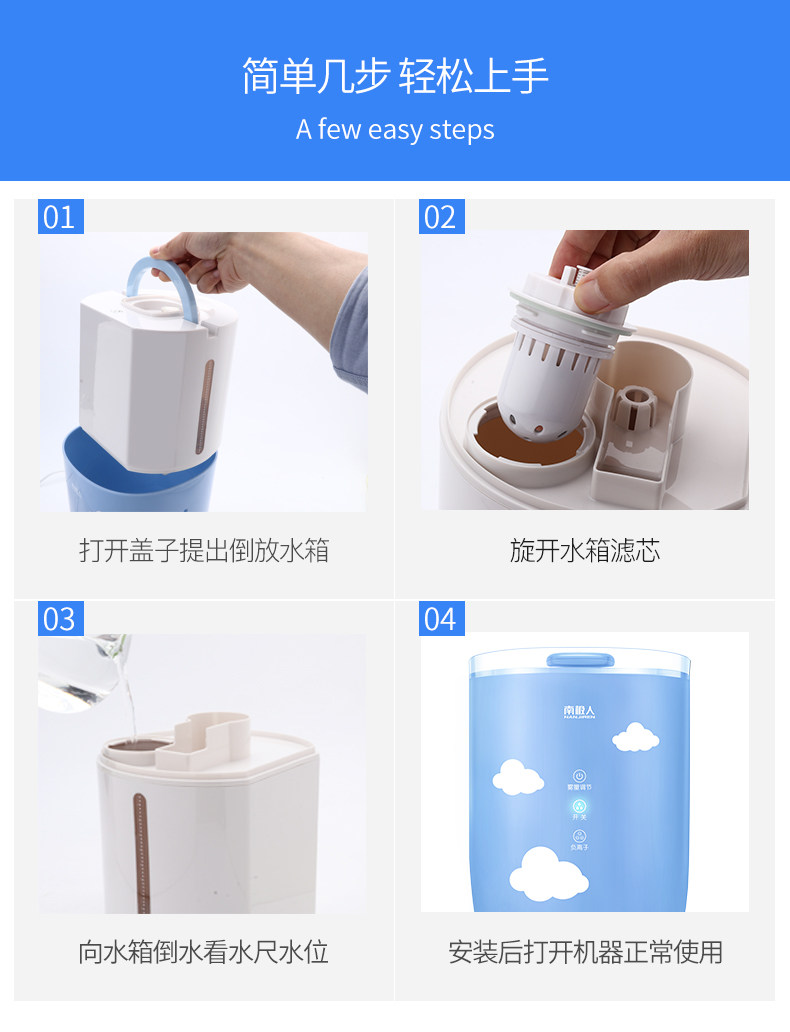 用了一段时间了,质量不错,没有噪音,北方的冬天屋里空气干燥的伤不起呀,买来放到孩子屋里用的,基本没什么声音,储水量超级大,灌满可以用一整晚+一上午,出雾量也很大