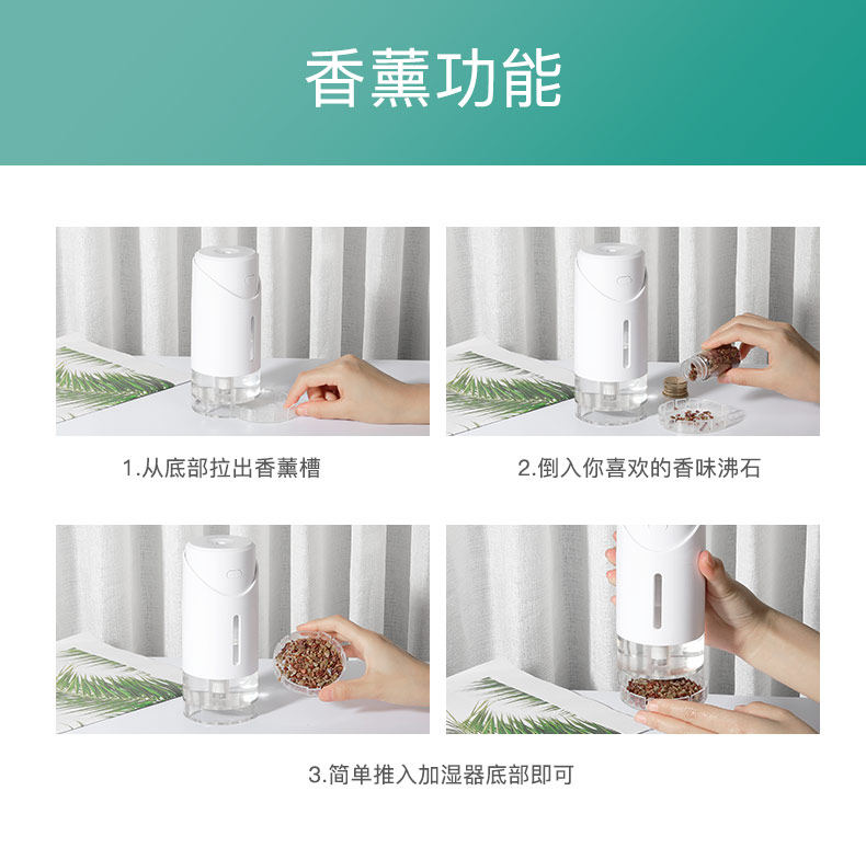 宝贝小巧可爱,工作期间超静音,没有噪音,雾气大!把里面的过滤棒安装到底,雾气会一直保持大而细!水用完了会自动断电,防止干烧,棒棒哒!!!颜值妥妥的!
