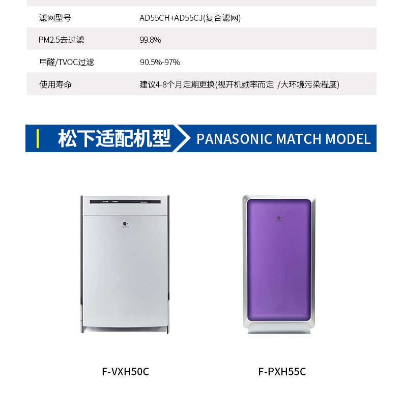 适用松下f-pxh55c VXH50C VJL55C空气净化器过滤网HEPA活性炭套装