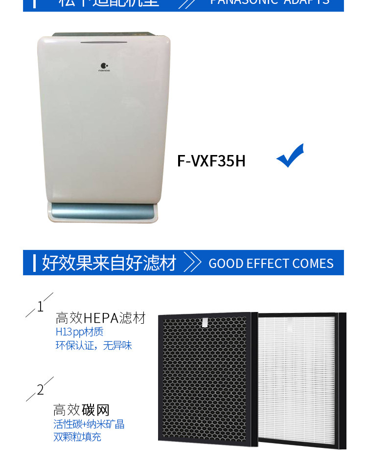 中智空滤适用松下空气净化器过滤网f-vxf35h集尘脱臭芯