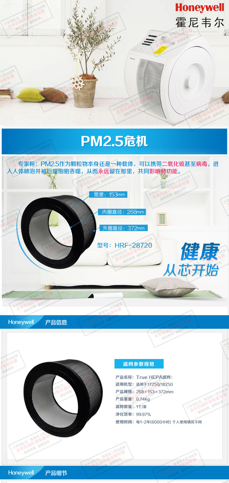 [天华百润环境电器净化,加湿抽湿机配件]Honeywell/霍尼韦尔空气净化月销量0件仅售679元