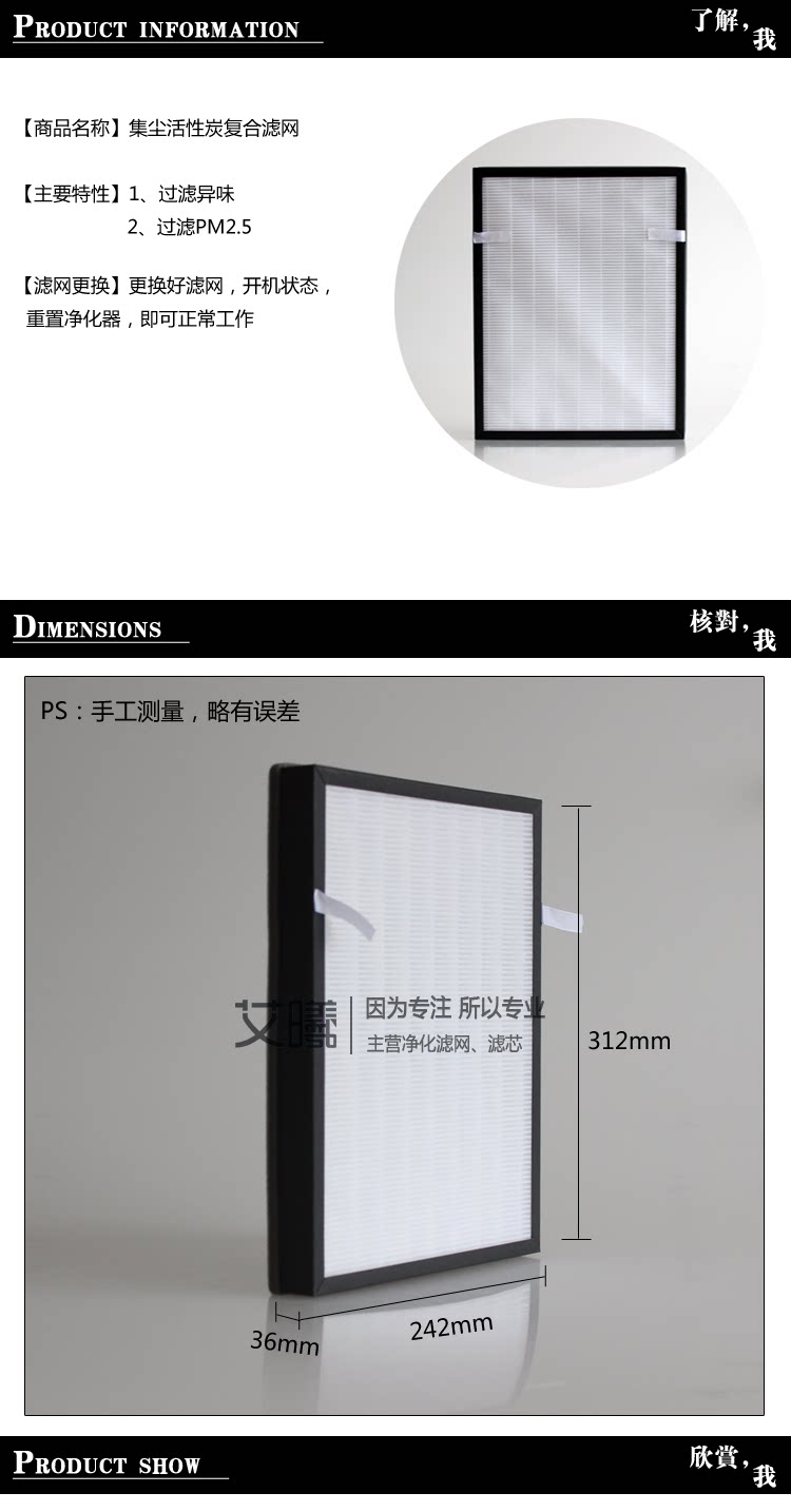 | 优惠1:集尘活性炭一体复合滤网,58元/片 |