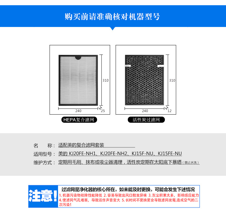 适配美的KJ20FE-NH1/NH2/KJ15F-NU/KJ15FE-NU空气净化器滤网套装