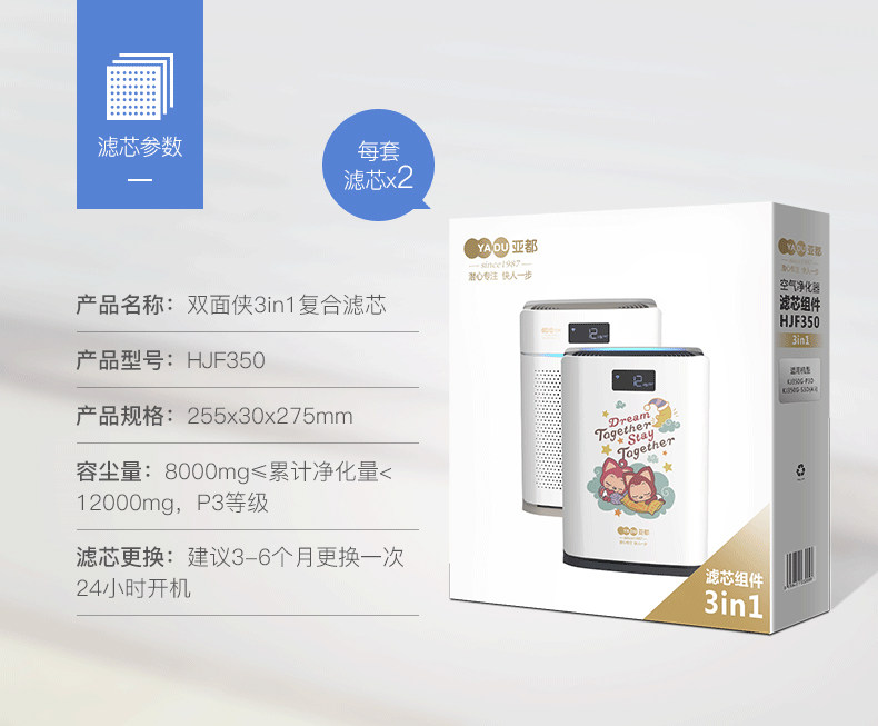 亚都空气净化器滤芯KJ350G-P3D/KJ350G-S3D(ALI)正品原厂耗材