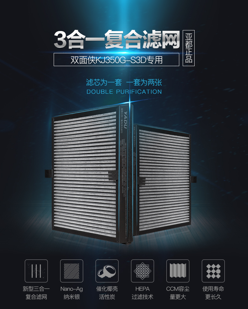 亚都空气净化器滤芯KJ350G-P3D/KJ350G-S3D(ALI)原厂耗材正品