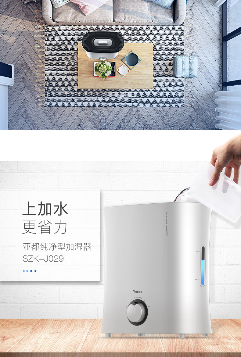 亚都纯净型空气加湿器SZ-J029 上加水净化型加湿器无雾无白粉正品