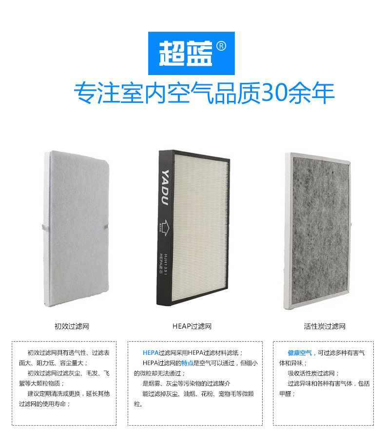 适配亚都KJT1351/1352/1353E空气净化器 超蓝 滤芯过滤网YD04