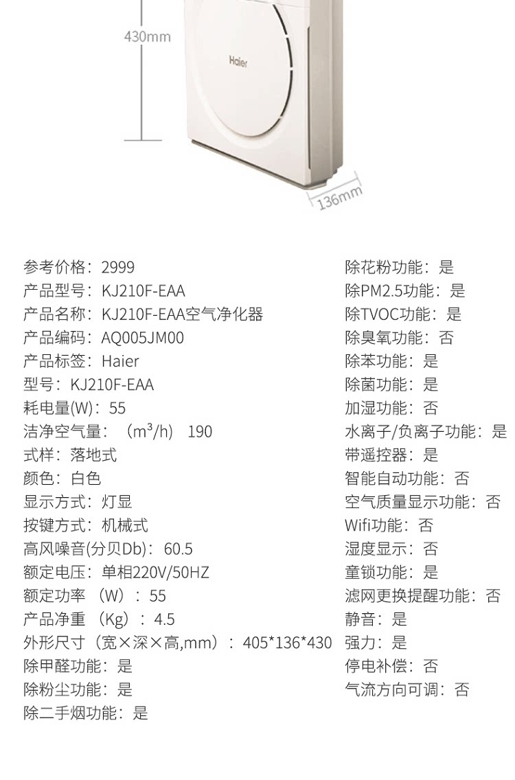(75)[松京旗舰店加湿器]松京HU61智能落地式加月销量995件仅售139.9元
