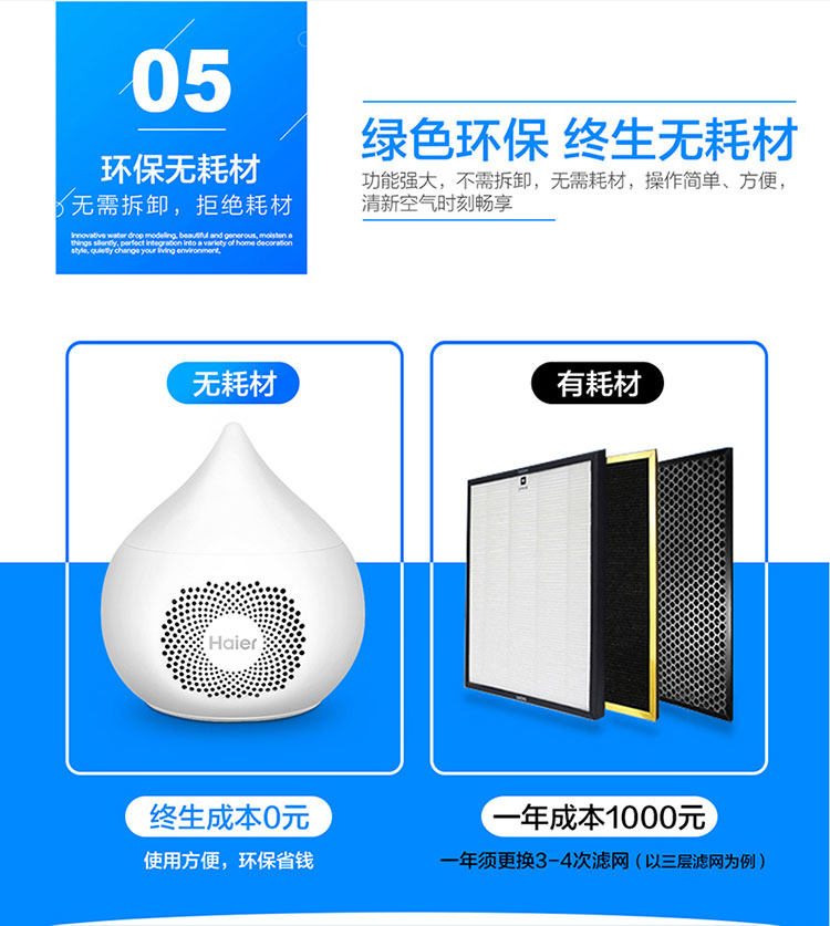 [海尔智健家居空气净化,氧吧]海尔空气净化器迷你家用除甲醛二手烟负月销量0件仅售399元