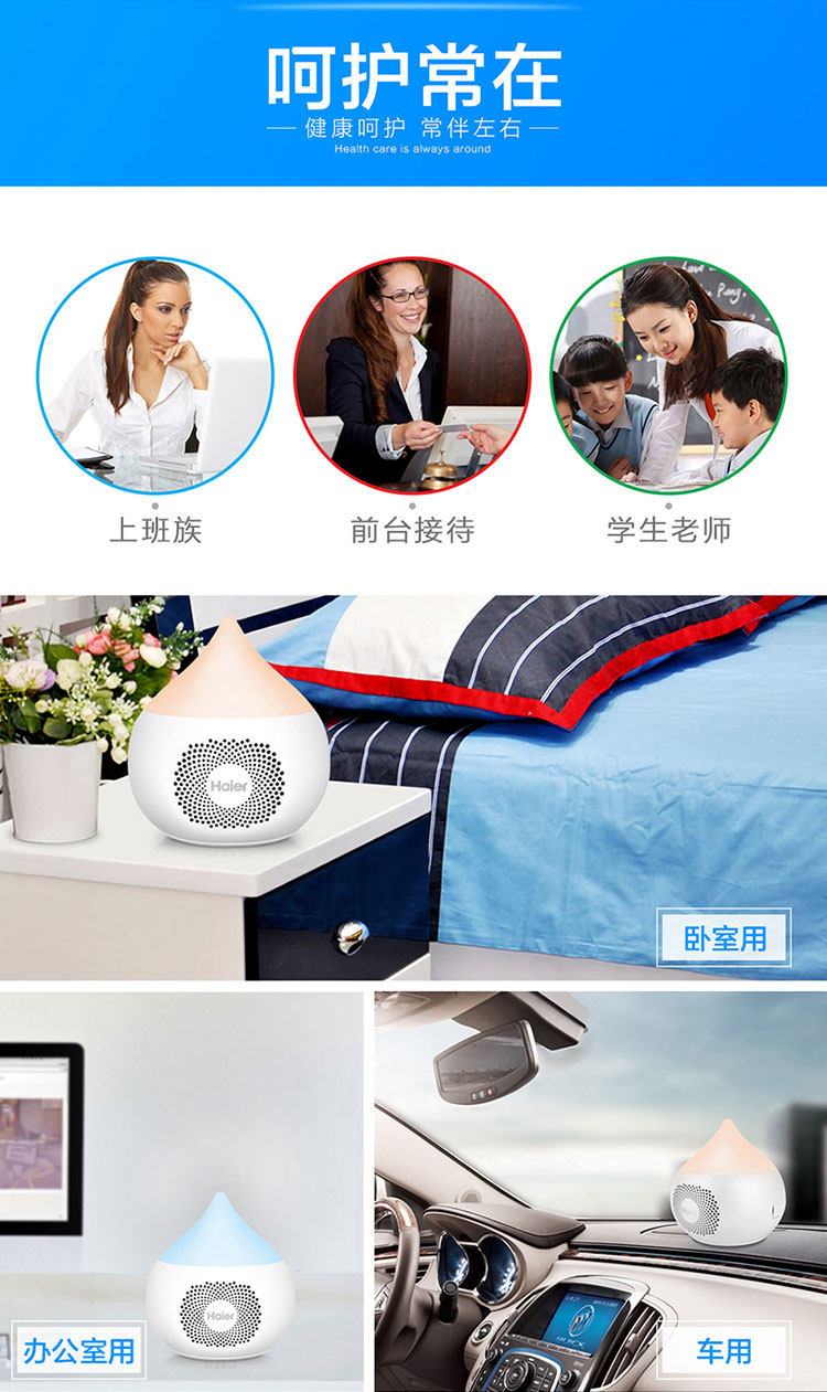 海尔空气净化器迷你家用除甲醛二手烟负离子办公室桌面小型净化器
