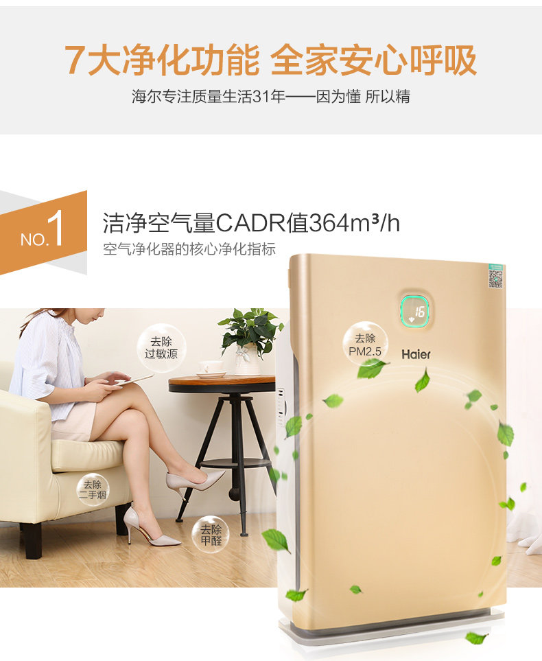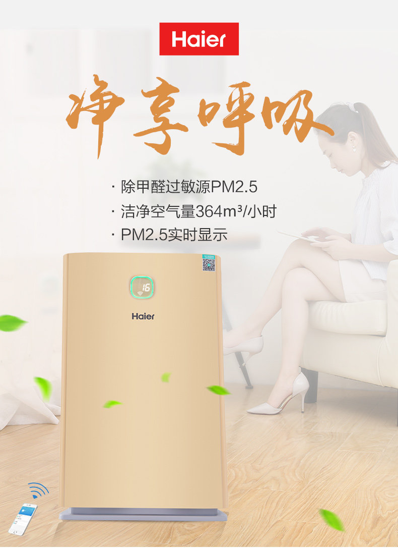[微利名品团购定制商城空气净化,氧吧]海尔空气净化器家用除甲醛PM2.5雾月销量0件仅售1499元