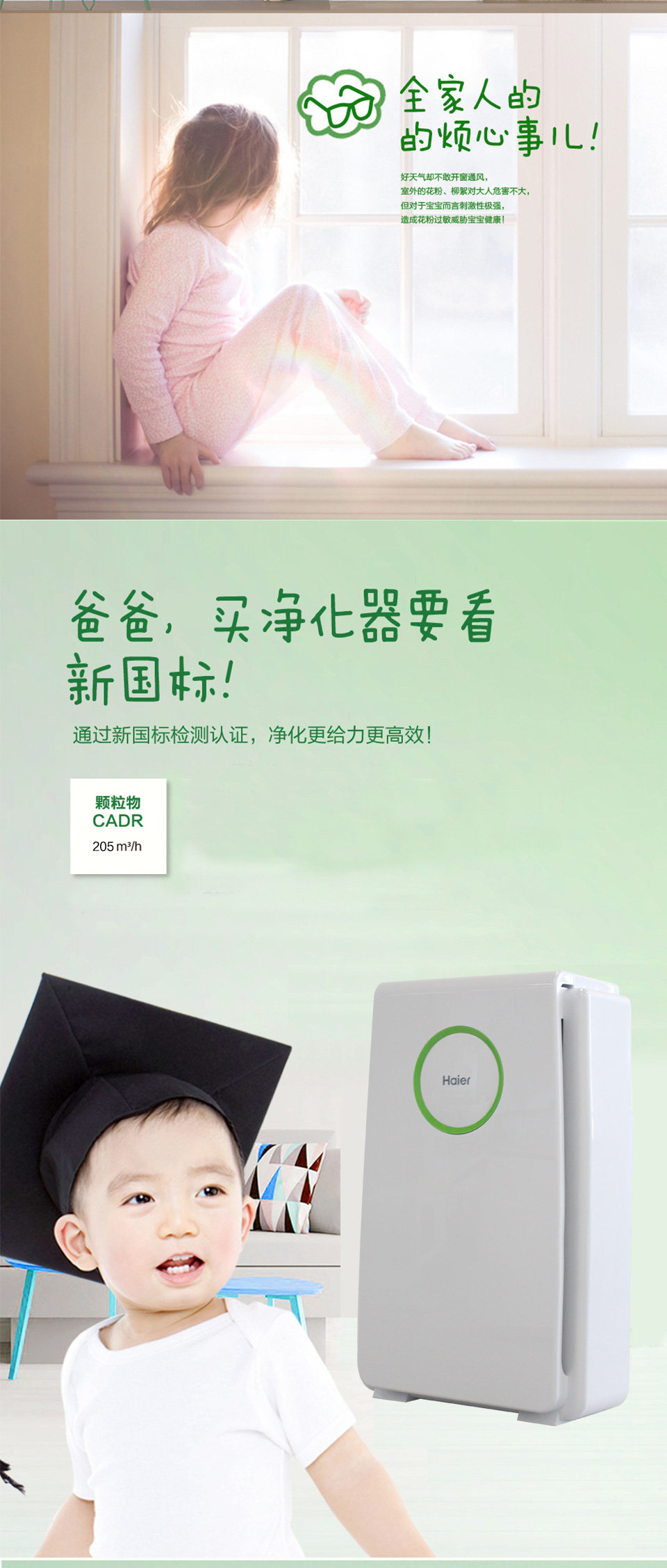 海尔(Haier) 除甲醛雾霾 家用除霾除醛空气净化器 KJ205F-HY01