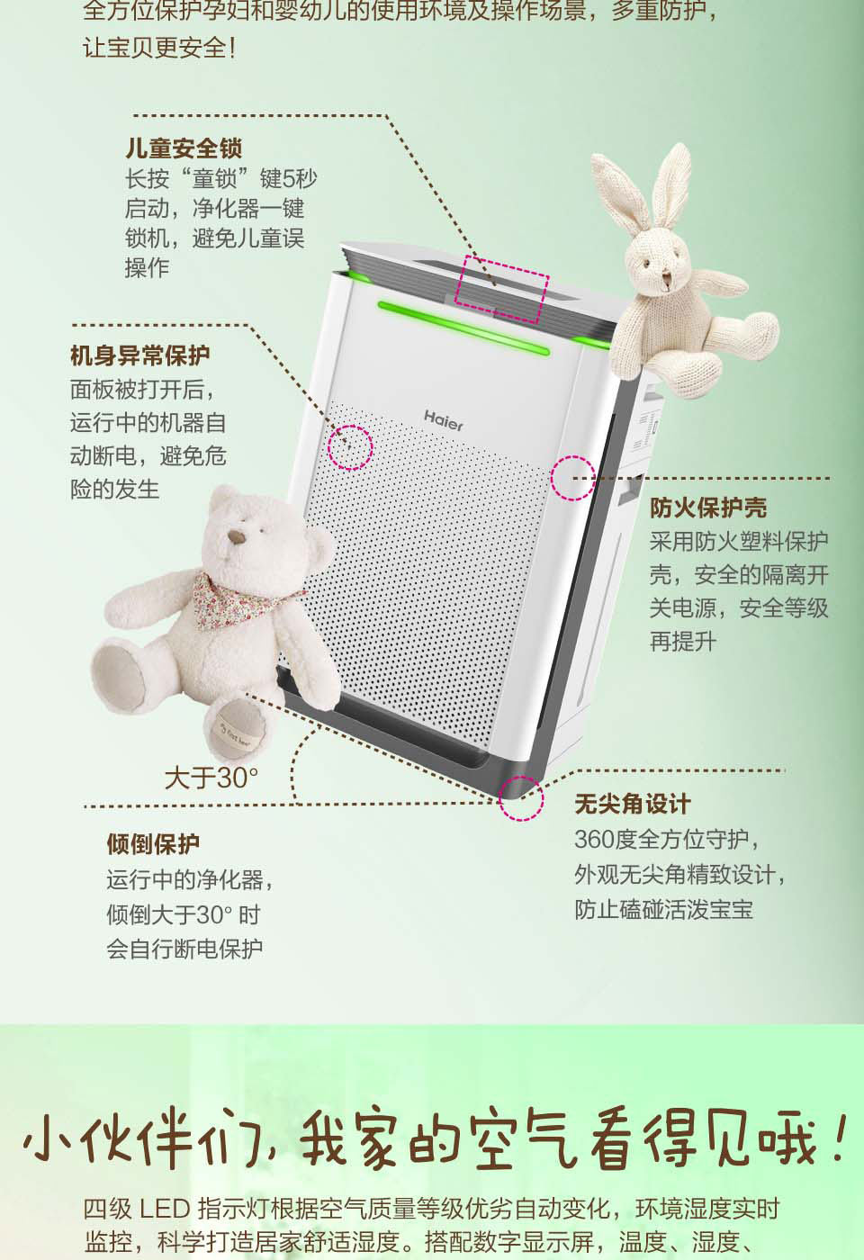 [海尔净水店空气净化,氧吧]Haier/海尔母婴空气净化器家用除月销量0件仅售1999元