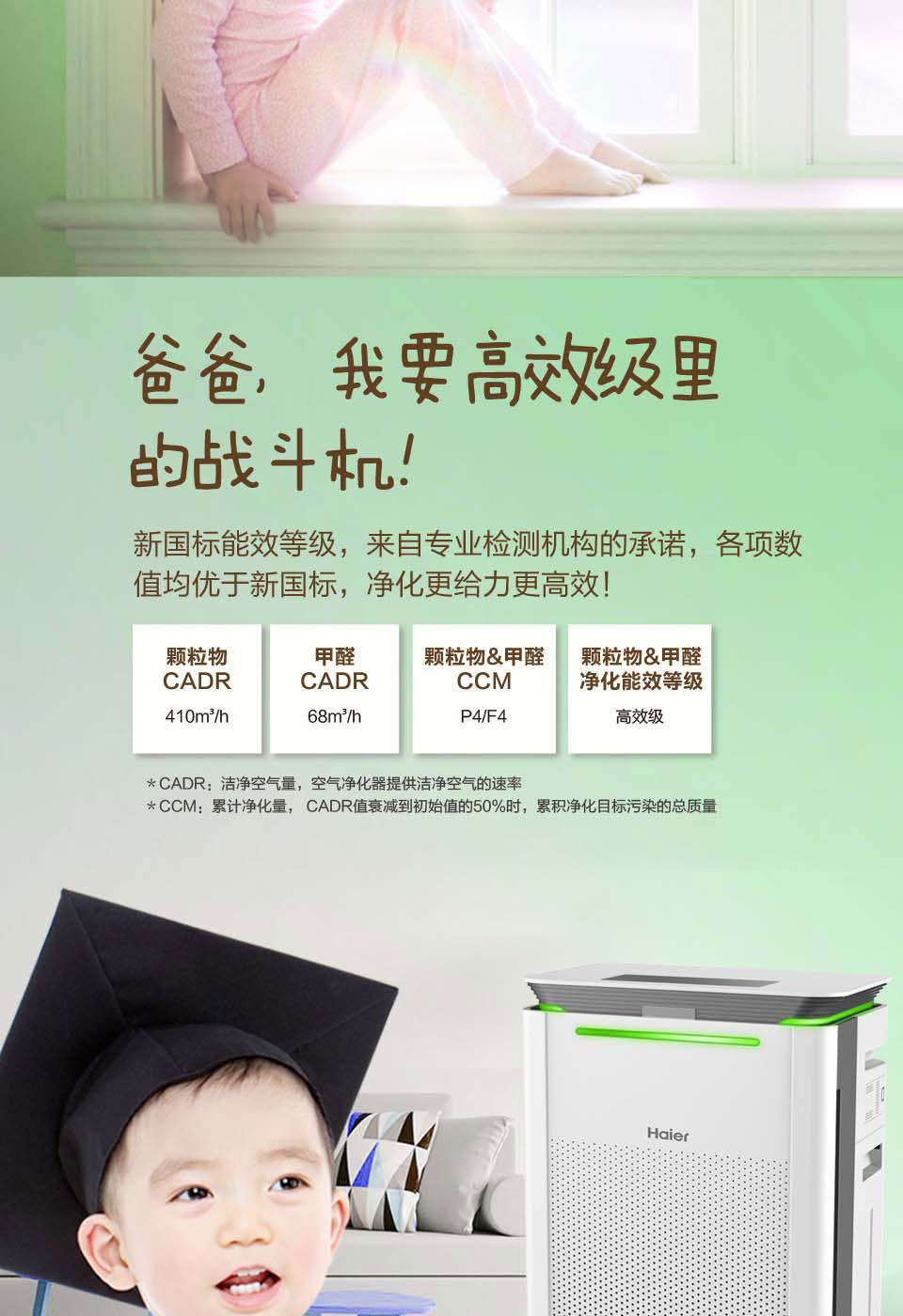 Haier/海尔母婴空气净化器家用除雾霾甲醛烟尘二手烟KJ410F-HY01A