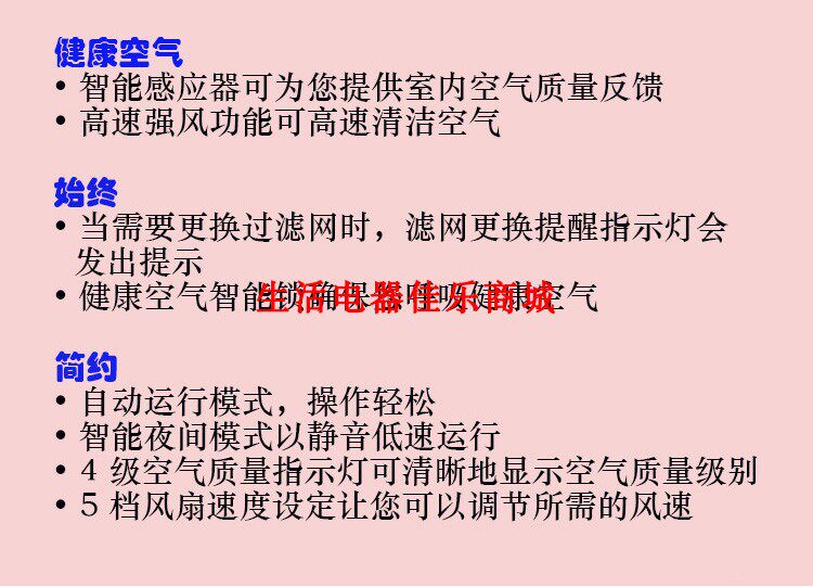 • 功能:除花粉 除甲醛 除烟除尘 杀菌