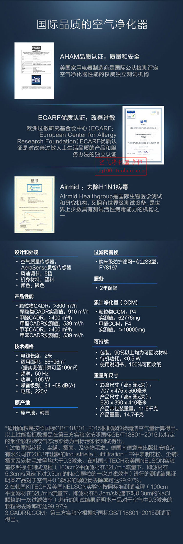 • 空气净化能效等级:高效级