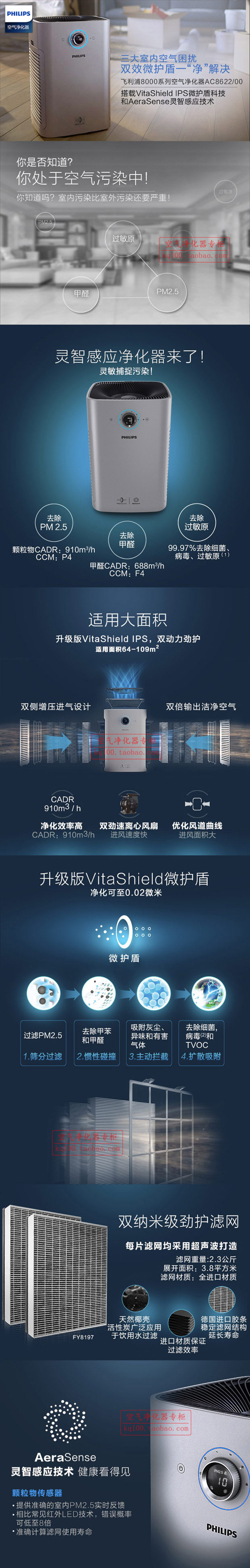现货 Philips/飞利浦AC8622 空气净化器 高效去除PM2.5 甲醛 异味
