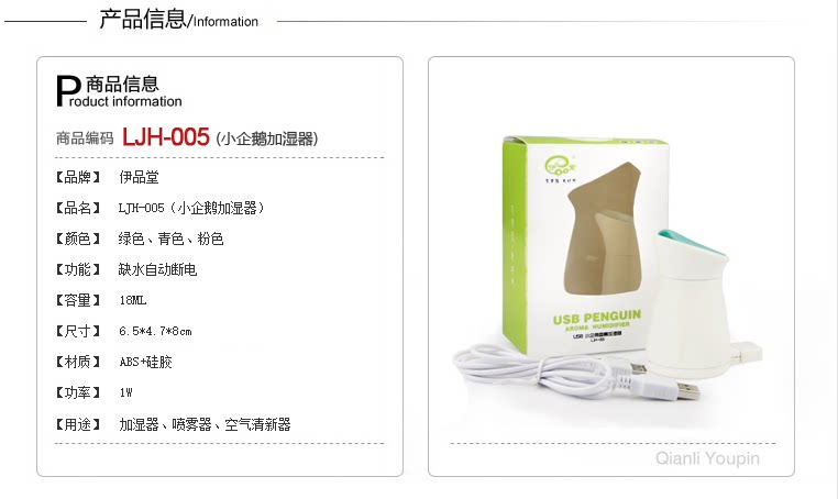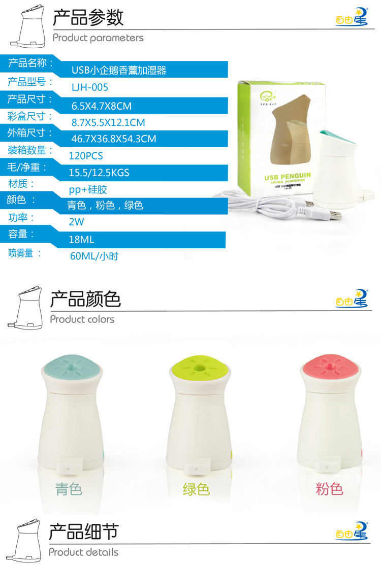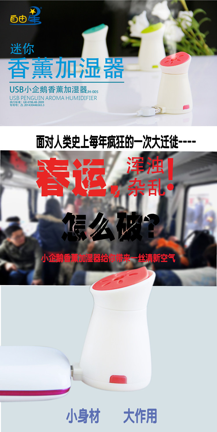 正品自由星USB小企鹅迷你加湿器全新上市