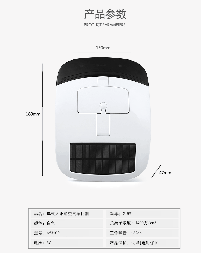 小千喵太阳能车载空气负离子净化器汽车数显净化器升级版